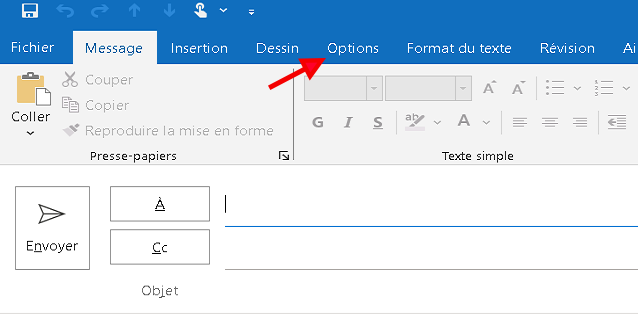 Ouvrez un nouveau mail, puis cliquez sur l’onglet « Options »