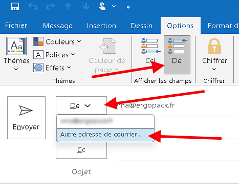 La ligne « De » apparait dans la partie mail, cliquez dessus, puis sur « Autre adresse de courrier »
